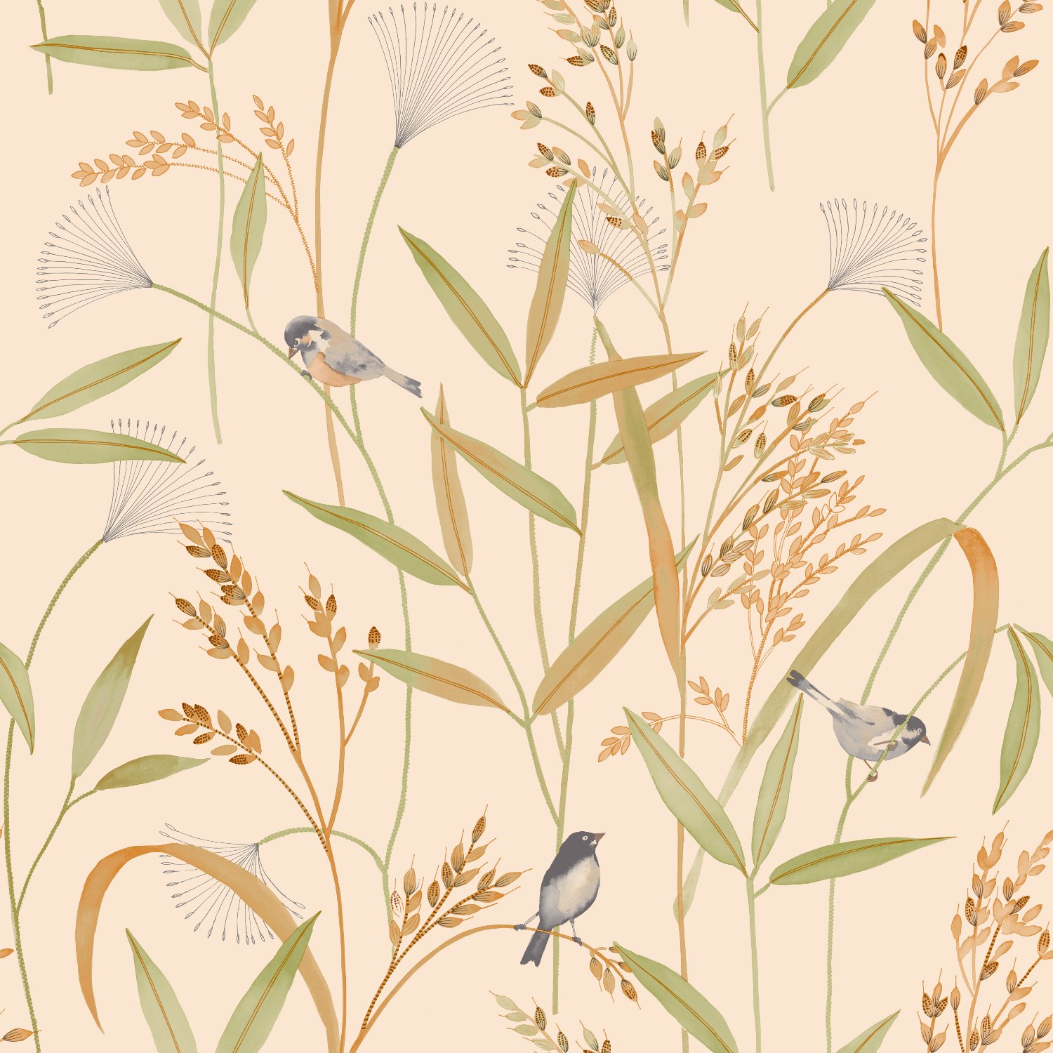 Et abstrakt gressmønster tilfører et moderne og spennende preg, mens ensfargede tapeter med delikate tekstilstrukturer er utviklet for å matche mønstrene perfekt. Slik kan du enkelt skape en gjennomført stil, enten du ønsker et uttrykk som er lekent og energisk, eller mykt og elegant.
