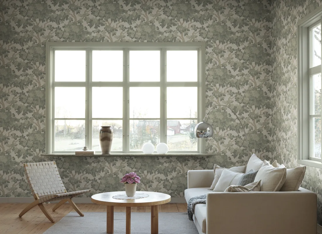 Fordyp rommet ditt i frodig ro med vår Eken tapet. Inspirert av rolige hager, har dette designet en harmonisk samling av hagens grønne blader som gir jordnær eleganse til ethvert rom. Perfekt for de som søker et snev av natur inne, fremkaller dette mønsteret ro og sofistikasjon, og forvandler veggene dine til et lerret av organisk skjønnhet.