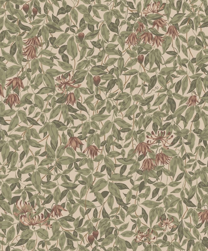 Vårt populære Linnea-mønster, med myke, grønne klematis og kaprifol, gir karakter og liv til hjemmet ditt. Dette velbalanserte mønsteret beroliger sinnet. Linnea, Burgundy, har rike, livlige nyanser av grønt og terrakotta på en beige bunn.