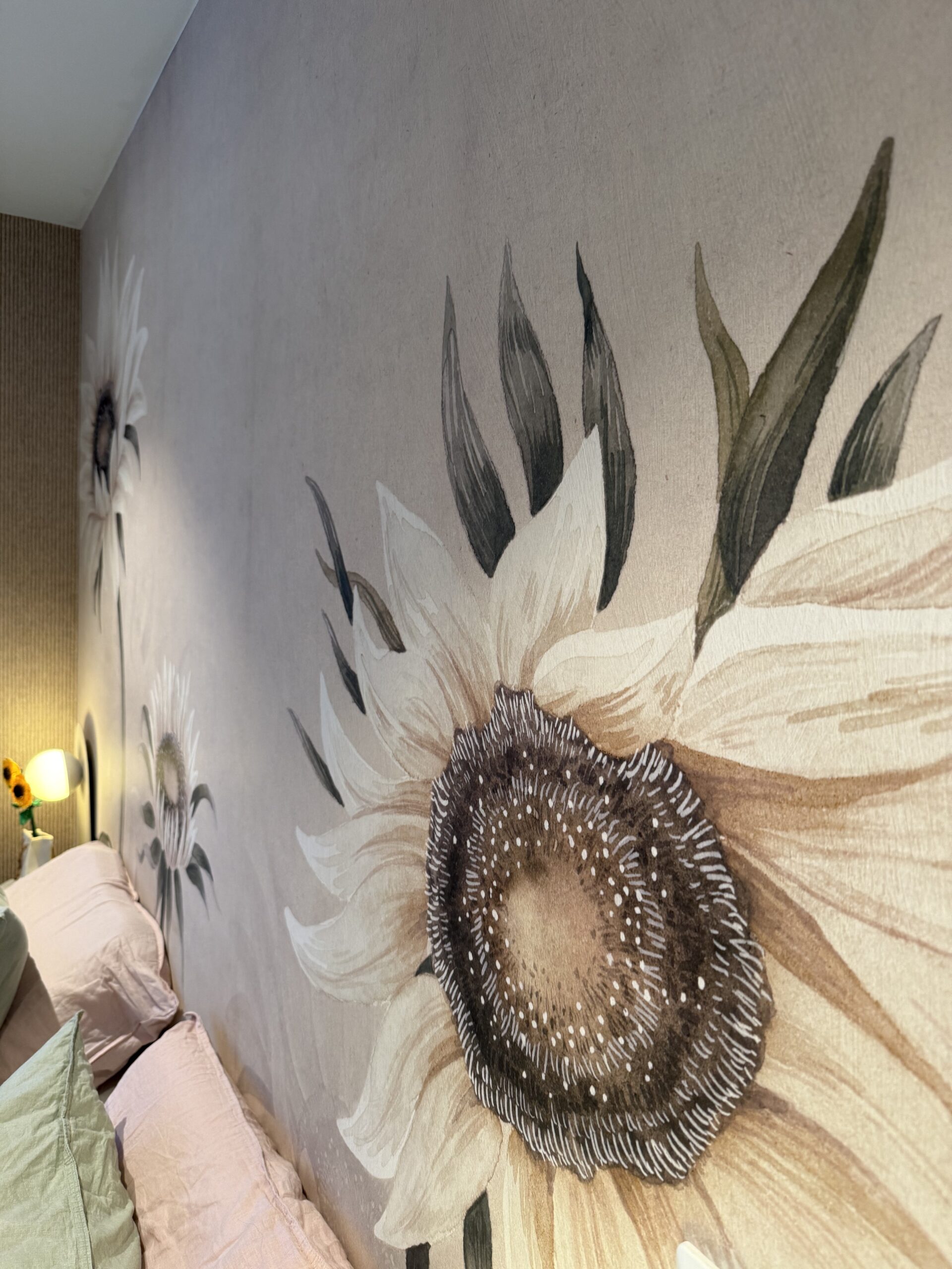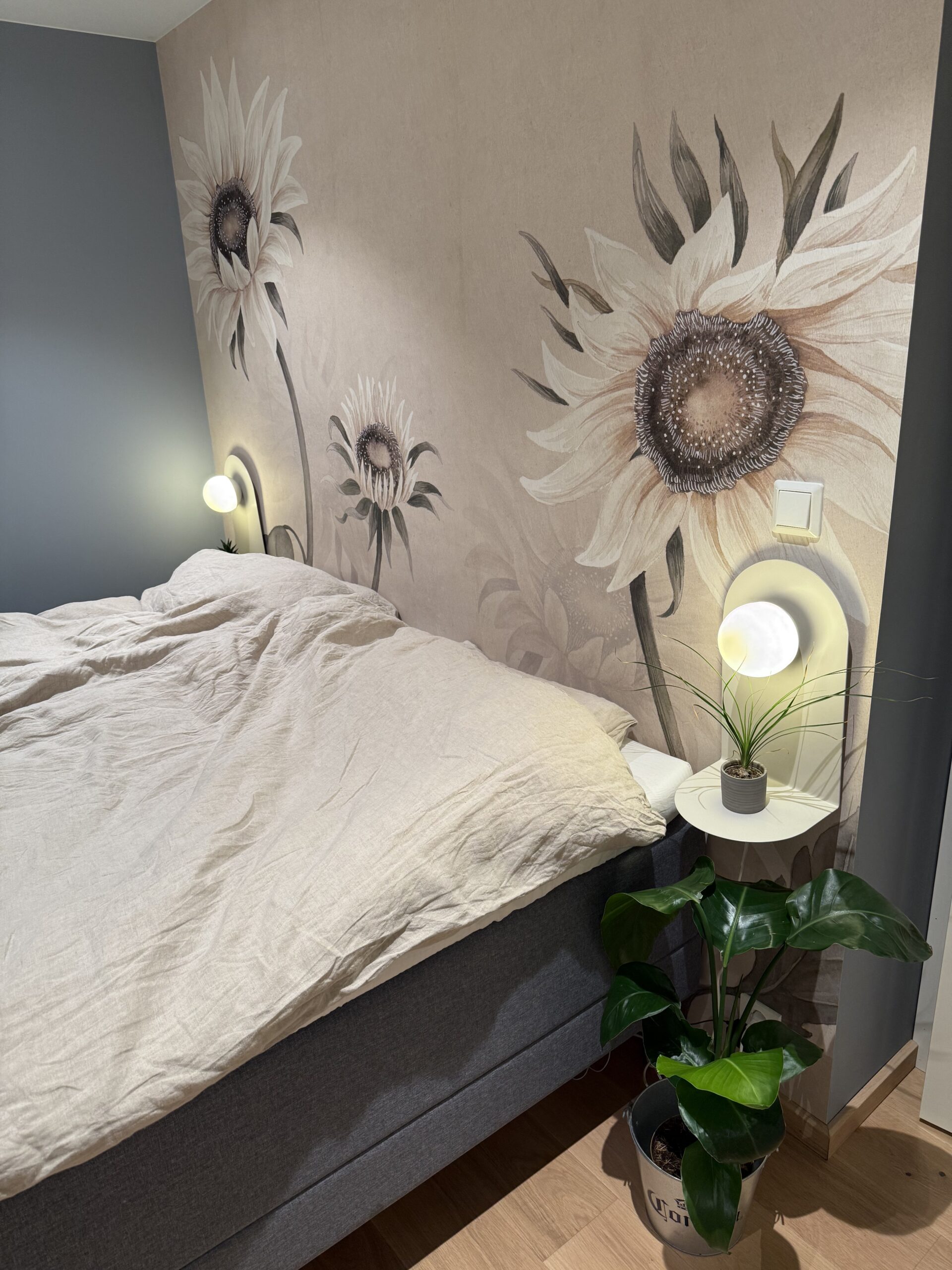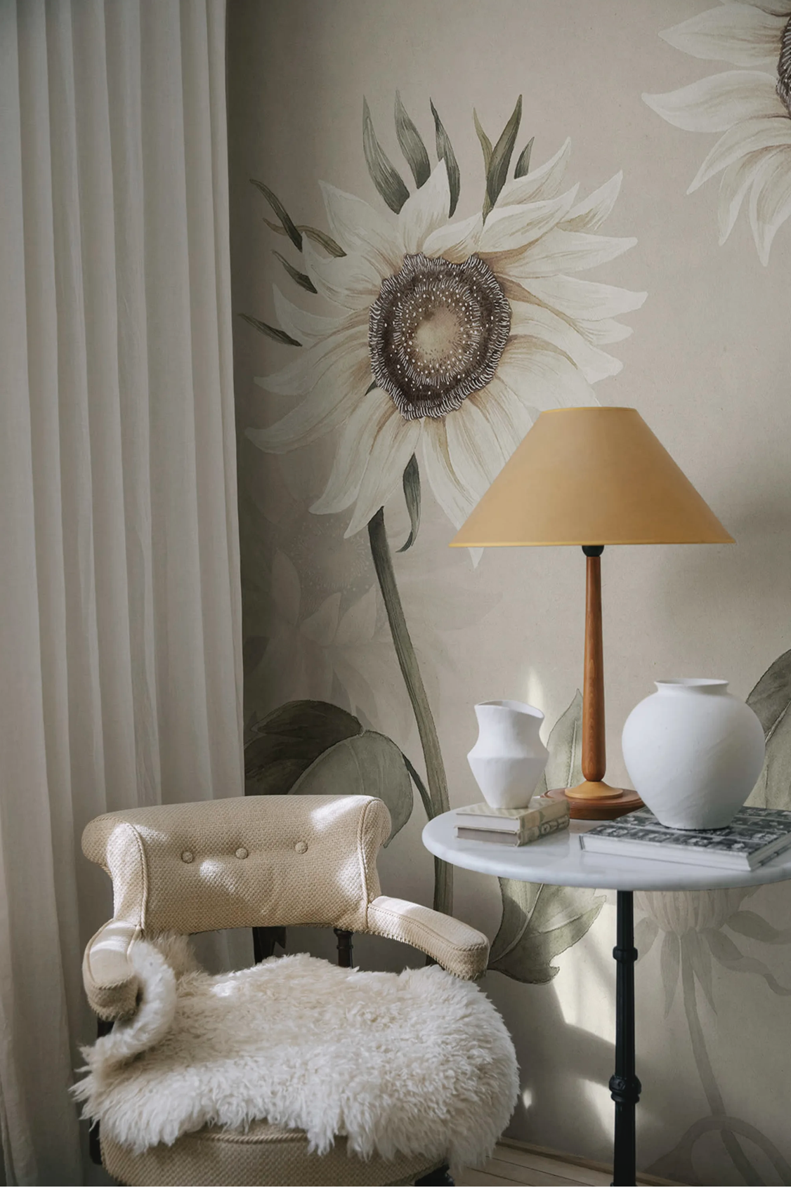 Hvis Öland kunne ha en annen provinsiell blomst, ville den store solsikken få vår stemme. Solsikkemaleriet vårt blomstrer mykt som et symbol på sommeren, solen og øya Öland. Solsikker, Hvit, har grasiøse blomster i elegante myke hvite, brune og grønne på en beige base.